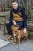 Барни приучен к выгулу и туалету на улице, хорошо ходит на поводке и вообще послушный.