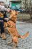 Он отличается ярким медным окрасом и пушистым лисьим хвостом. Лапки у Барни коротенькие, сам он низенький - в холке не больше 40 см (лично измеряла).