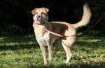 Скорее всего метис крупной породы, высота в холке 60 см, вес 25-27 кг.