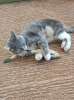 Мэй обожает игрушки и сама зовёт играть — очень общительная малышка! Можно гладить, брать на руки (на пару секунд — пока только привыкает), не агрессивна и быстро адаптируется к новой обстановке.