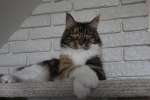 Взрослая кошка мейн кун (7 лет) ищет новый дом. Девочка является чемпионом породы и обладает прекрасными породными данными: огромным размером, шикарными рысьими кисточками, шерсткой яркого черепахового мраморного с белым окраса. Кошка выведена из разведения, чистоплотна, стерилизована, очень ласковая и покладистая. Отдается в качестве домашнего любимца только в самые заботливые и ответственные руки. Подробнее по телефону.