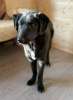 У Сени на грудке белая галочка , короткие ушки, глаза пуговки. Он самый маленький в помете, но самый смышленый и деловой парень.